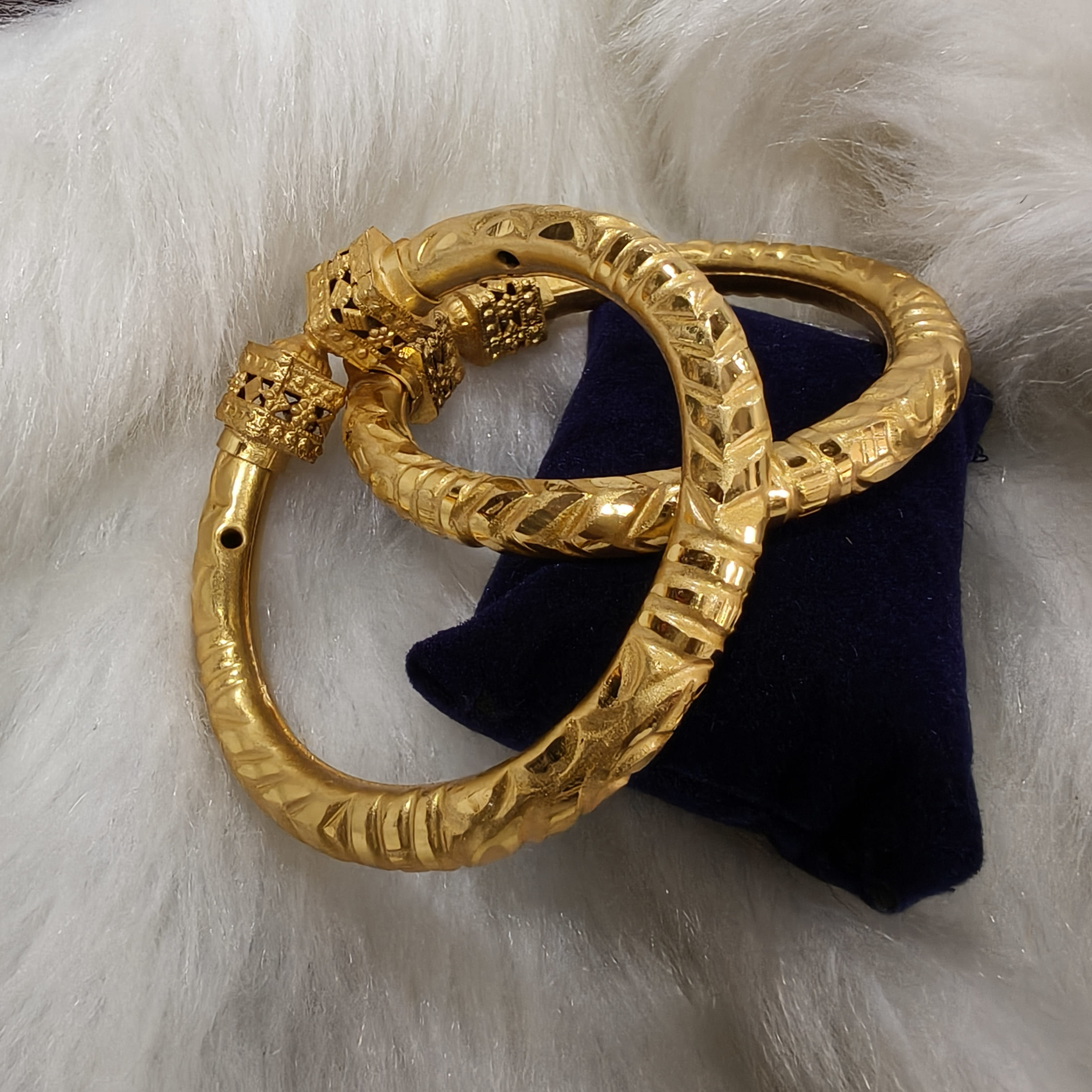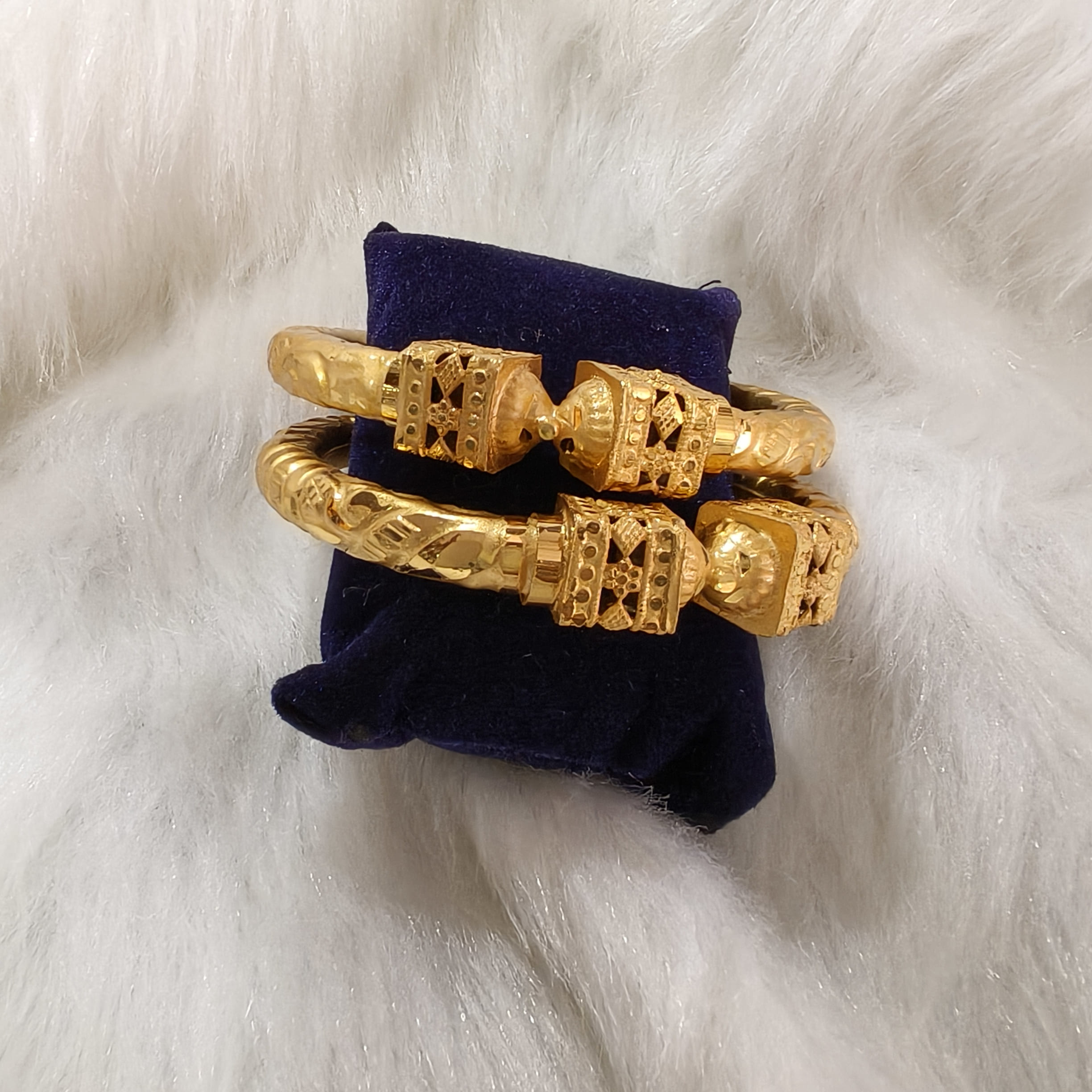 Indulge in the opulence of our Gold Plated Pair Farfo Bala with Mukh. Ideal for weddings, special occasions, and traditional festive wear, these golden-hued bangles radiate timeless elegance. The intricate mukh (face) design adds a touch of traditional charm, a celebration of artistry and culture. Expertly gold plated, they exude a lustrous finish, showcasing craftsmanship at its best. A valuable addition to our Traditional Collection, they flawlessly complement sarees and kurtis, enhancing your attire with a regal aura. Embrace the richness of tradition and grace your wrists with these exquisite bangles, epitomizing heritage and style.