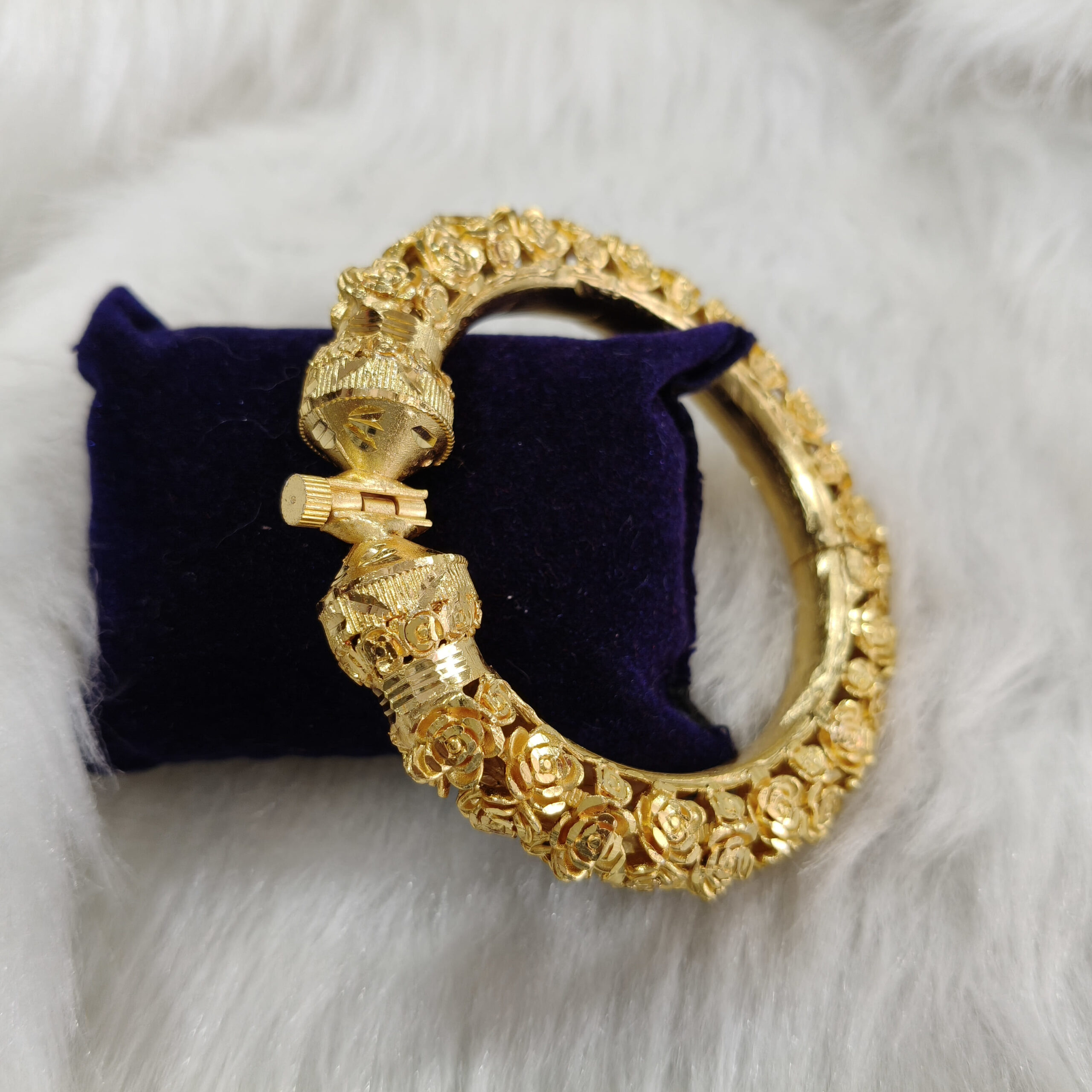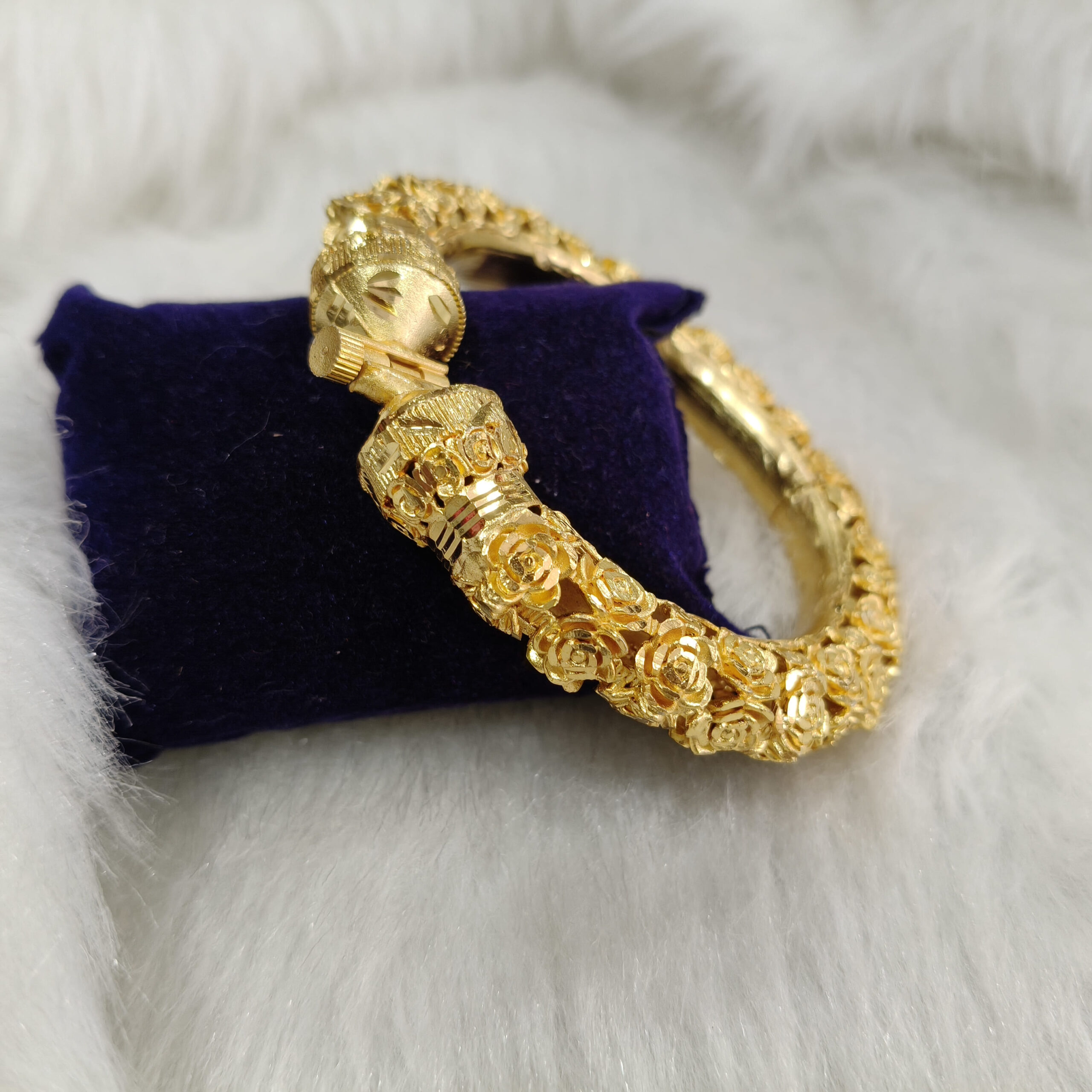 Presenting our exquisite “Golap Bala” – a radiant emblem of elegance and tradition. Crafted with meticulous detail, this single piece of Golden Rose Bala bangle, adorned with a resplendent rose design, is a celebration of grace and femininity. Perfect for special occasions, weddings, and traditional festivals, this gold-plated masterpiece embodies timeless allure and cultural heritage. Pair it effortlessly with sarees, kurtis, or Indian suits to elevate your ensemble. Enhance your style with this symbolic piece, a testament to refined craftsmanship and an expression of beauty, enhancing your charm on every festive and special occasion.