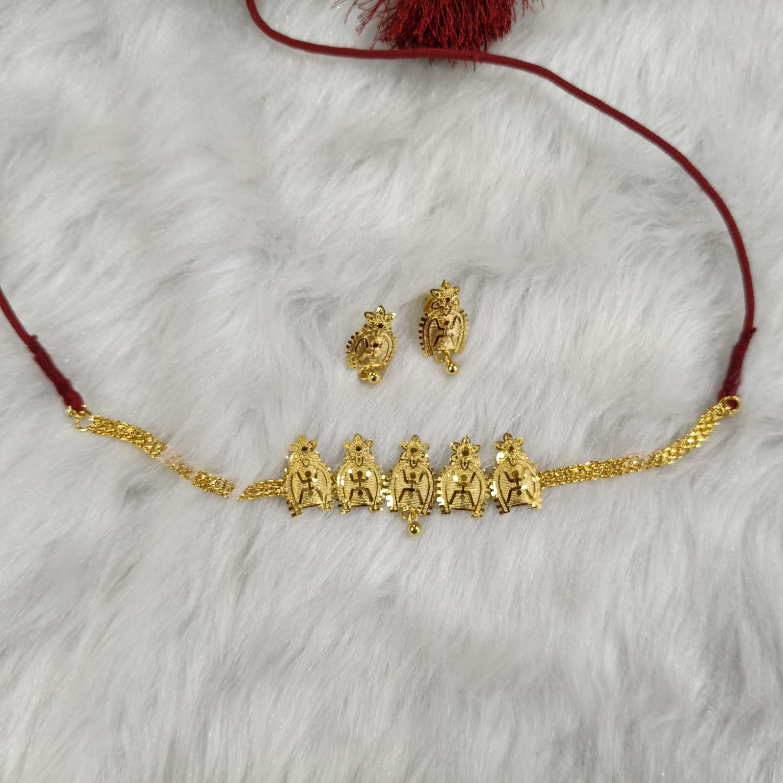 Unveil the timeless elegance with our Gold Plated Floral Design Chick Set Necklace, perfect for special occasions, festive wear, and traditional events. This exquisite necklace set showcases a stunning floral motif, intricately crafted and adorned with radiant gold plating. The Chick Set design adds a touch of grace and sophistication, making it an ideal complement to your saree ensemble. Elevate your style and embrace the richness of tradition with this captivating necklace set from our Traditional Collection. Make a statement at every gathering with the allure of gold and the intricate beauty of our Floral Design Chick Set Necklace.