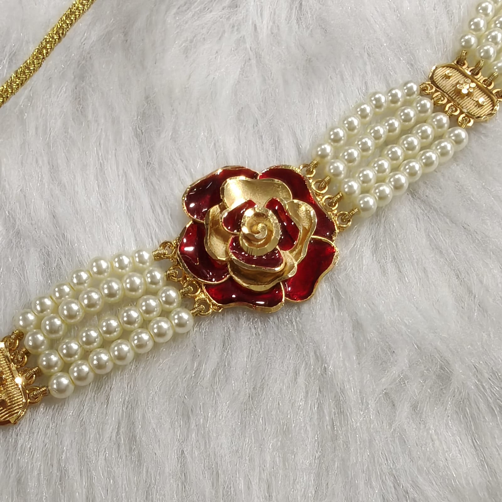 Elevate your ethnic charm with this stunning Pearl Chick Set, crafted to perfection for festive and special occasions. Featuring radiant white pearls beautifully complemented, this set exudes elegance and grace. The rich gold plating enhances its traditional appeal while maintaining a modern touch. Ideal for party wear and gifting, it pairs beautifully with sarees, making it a must-have for every jewelry lover. Whether you’re attending a celebration or looking for the perfect gift, this chick set adds a refined sparkle to your look, making you shine effortlessly with timeless sophistication and style.