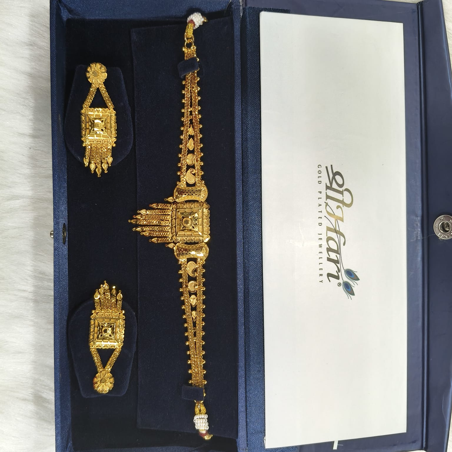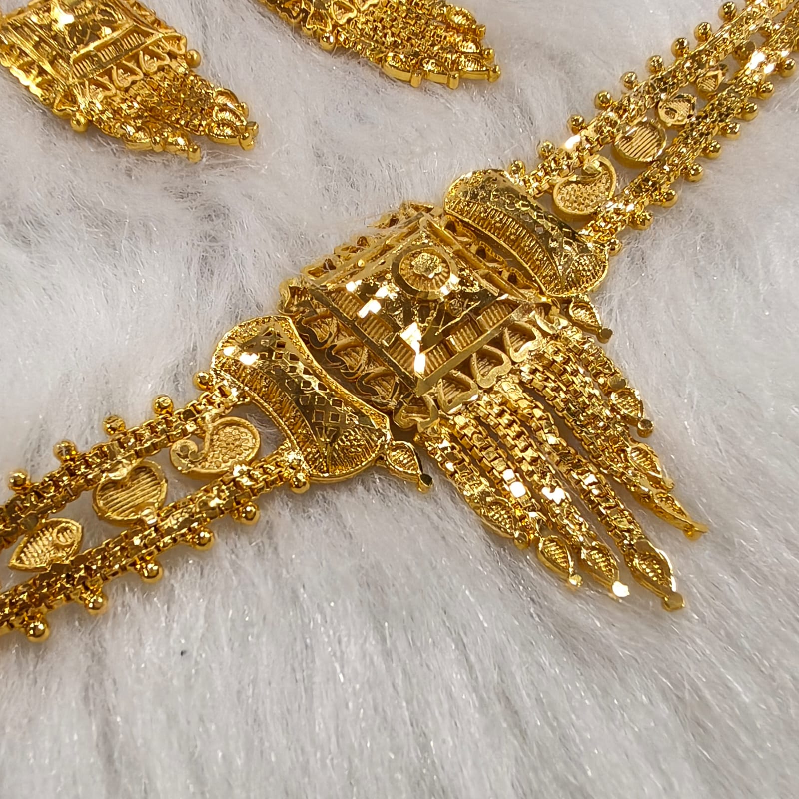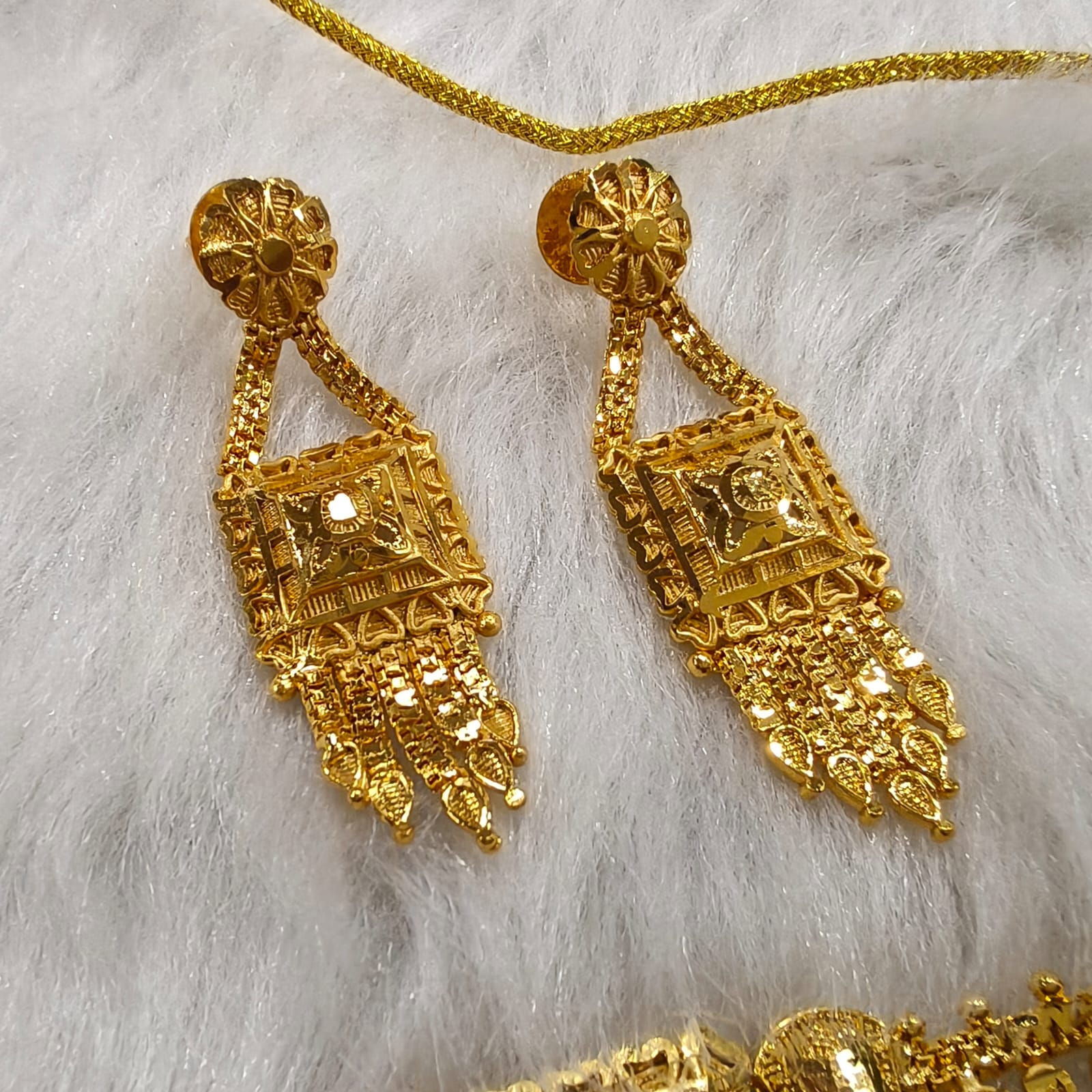 Unveil the timeless elegance with our Gold Plated Floral Design Chick Set Necklace, perfect for special occasions, festive wear, and traditional events. This exquisite necklace set showcases a stunning floral motif, intricately crafted and adorned with radiant gold plating. The Chick Set design adds a touch of grace and sophistication, making it an ideal complement to your saree ensemble. Elevate your style and embrace the richness of tradition with this captivating necklace set from our Traditional Collection. Make a statement at every gathering with the allure of gold and the intricate beauty of our Floral Design Chick Set Necklace.