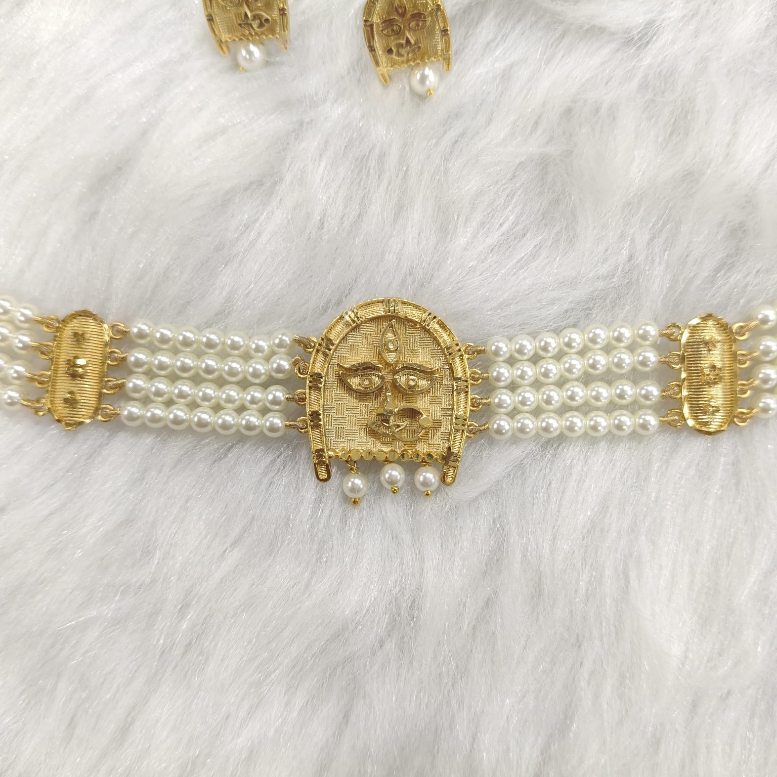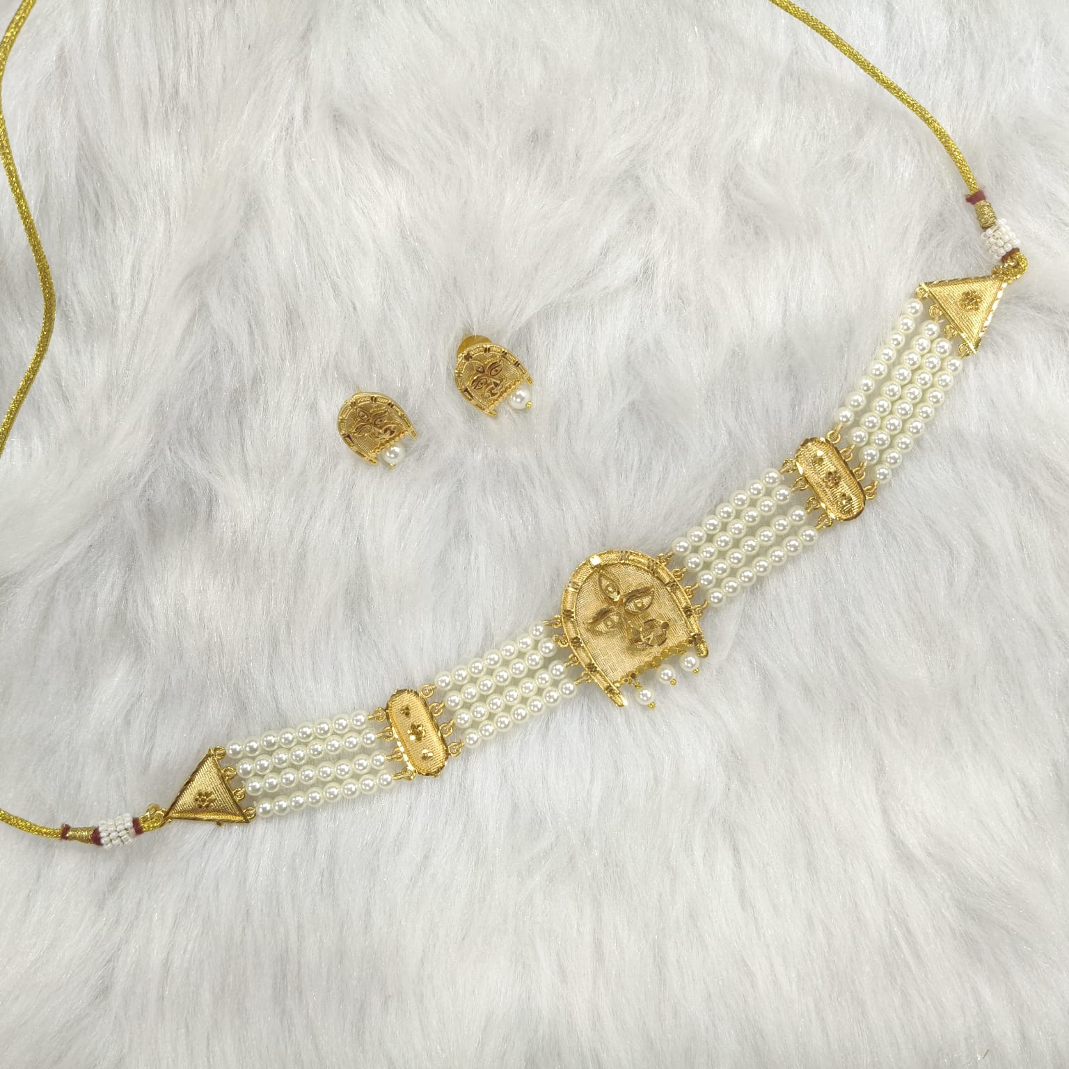 Elevate your ethnic charm with this stunning Pearl Chick Set, crafted to perfection for festive and special occasions. Featuring radiant white pearls beautifully complemented, this set exudes elegance and grace. The rich gold plating enhances its traditional appeal while maintaining a modern touch. Ideal for party wear and gifting, it pairs beautifully with sarees, making it a must-have for every jewelry lover. Whether you’re attending a celebration or looking for the perfect gift, this chick set adds a refined sparkle to your look, making you shine effortlessly with timeless sophistication and style.
