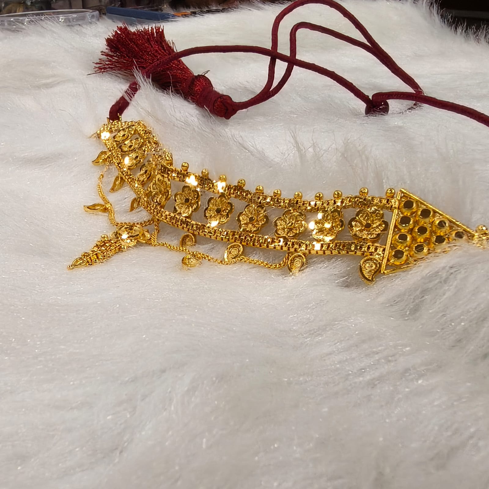 Unveil the timeless elegance with our Gold Plated Floral Design Chick Set Necklace, perfect for special occasions, festive wear, and traditional events. This exquisite necklace set showcases a stunning floral motif, intricately crafted and adorned with radiant gold plating. The Chick Set design adds a touch of grace and sophistication, making it an ideal complement to your saree ensemble. Elevate your style and embrace the richness of tradition with this captivating necklace set from our Traditional Collection. Make a statement at every gathering with the allure of gold and the intricate beauty of our Floral Design Chick Set Necklace.