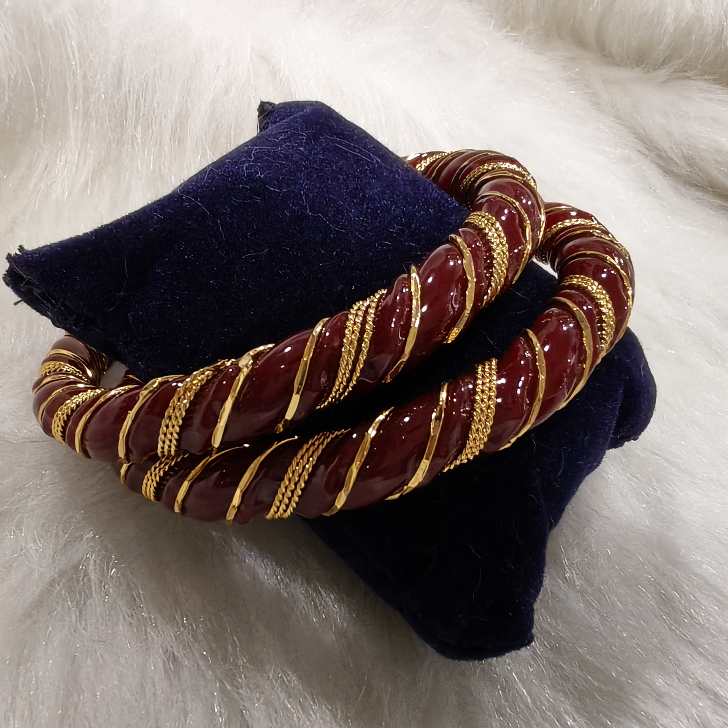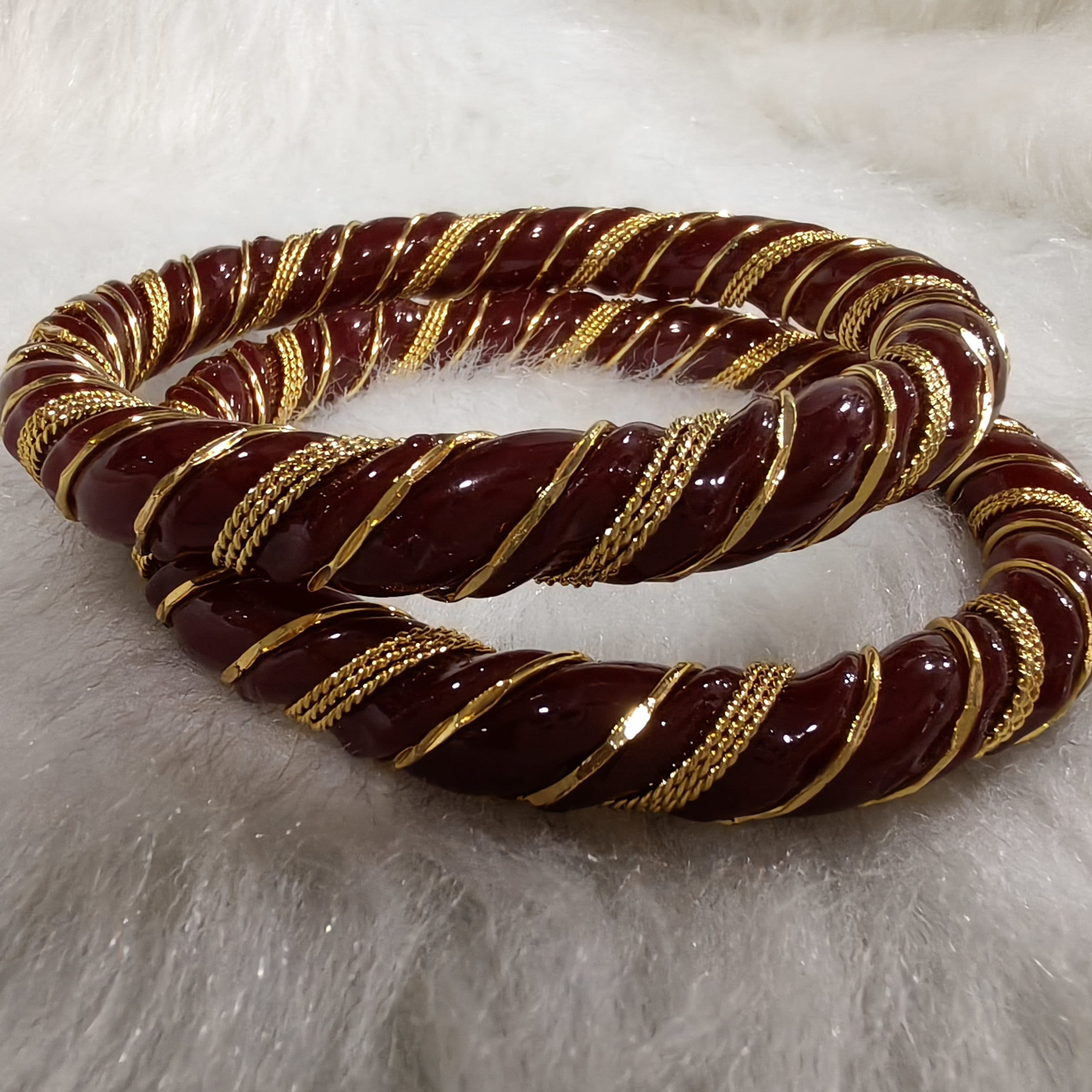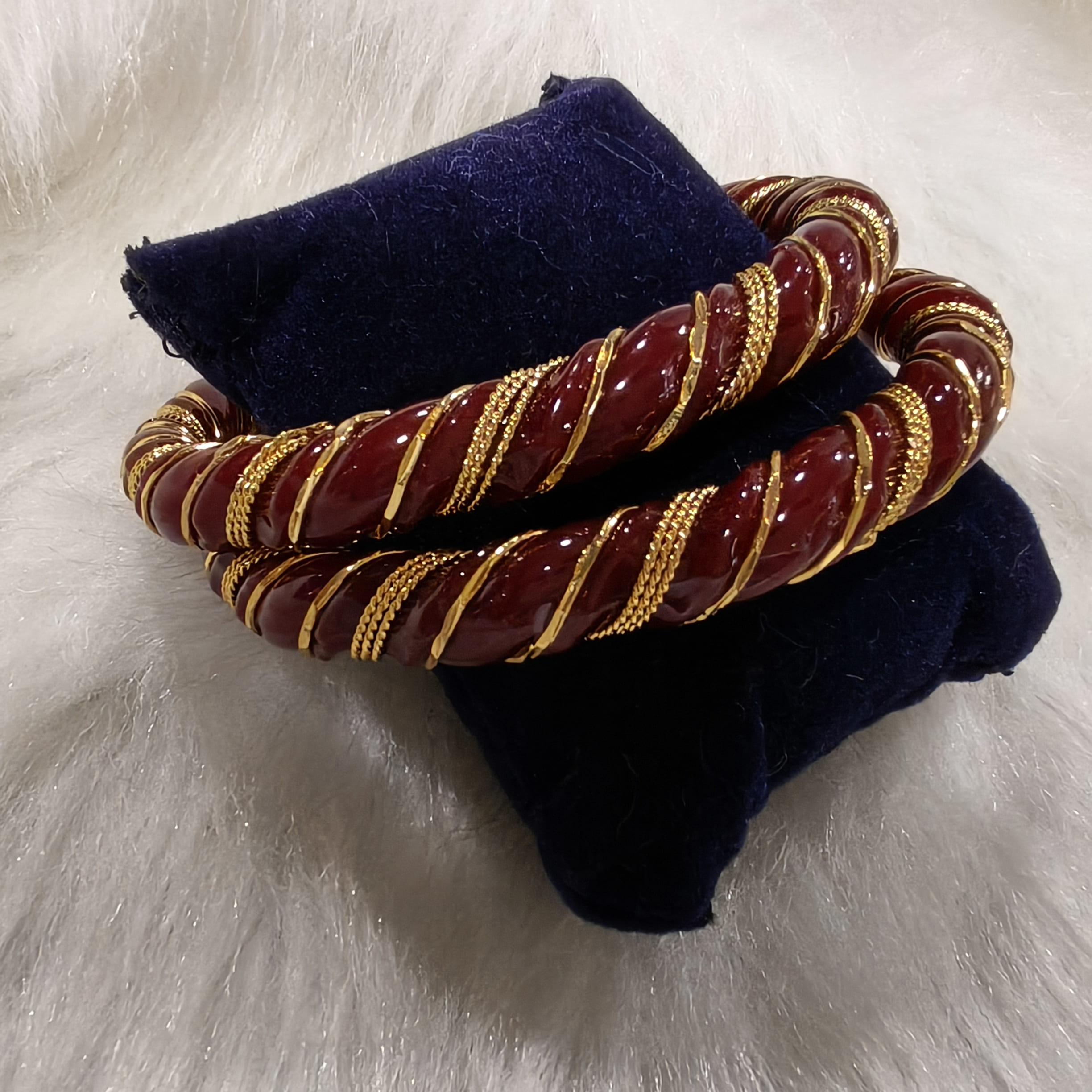Introducing this beautiful pair of “Pola Badhano” bangles from our collection of traditional jewellery. We have added gold-plated designs to make it look more luxurious and elegant. If you are a Bengali Bride, then select this pair of bangles over any simple bangle to amp up your look. You can pair these round “Pola” bangles with traditional attire like a saree. These bangles are lightweight because we have used fibre as the base material, which you can wear for a long time. Get ready to receive a lot of compliments on your special day.