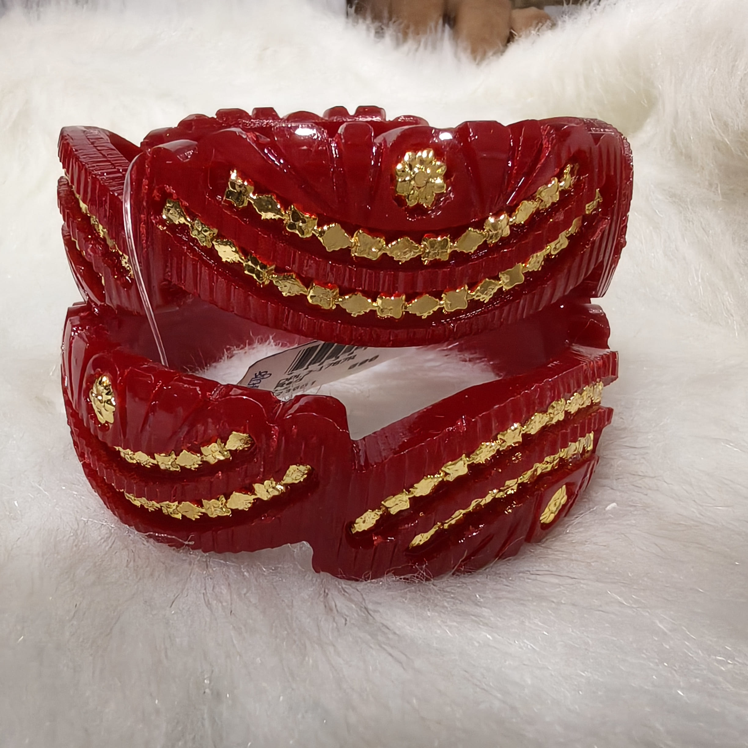 Introducing this beautiful pair of “Pola Badhano” bangles from our collection of traditional jewellery. We have added gold-plated designs to make it look more luxurious and elegant. If you are a Bengali Bride, then select this pair of bangles over any simple bangle to amp up your look. You can pair these round “Pola” bangles with traditional attire like a saree. These bangles are lightweight because we have used fibre as the base material, which you can wear for a long time. Get ready to receive a lot of compliments on your special day.