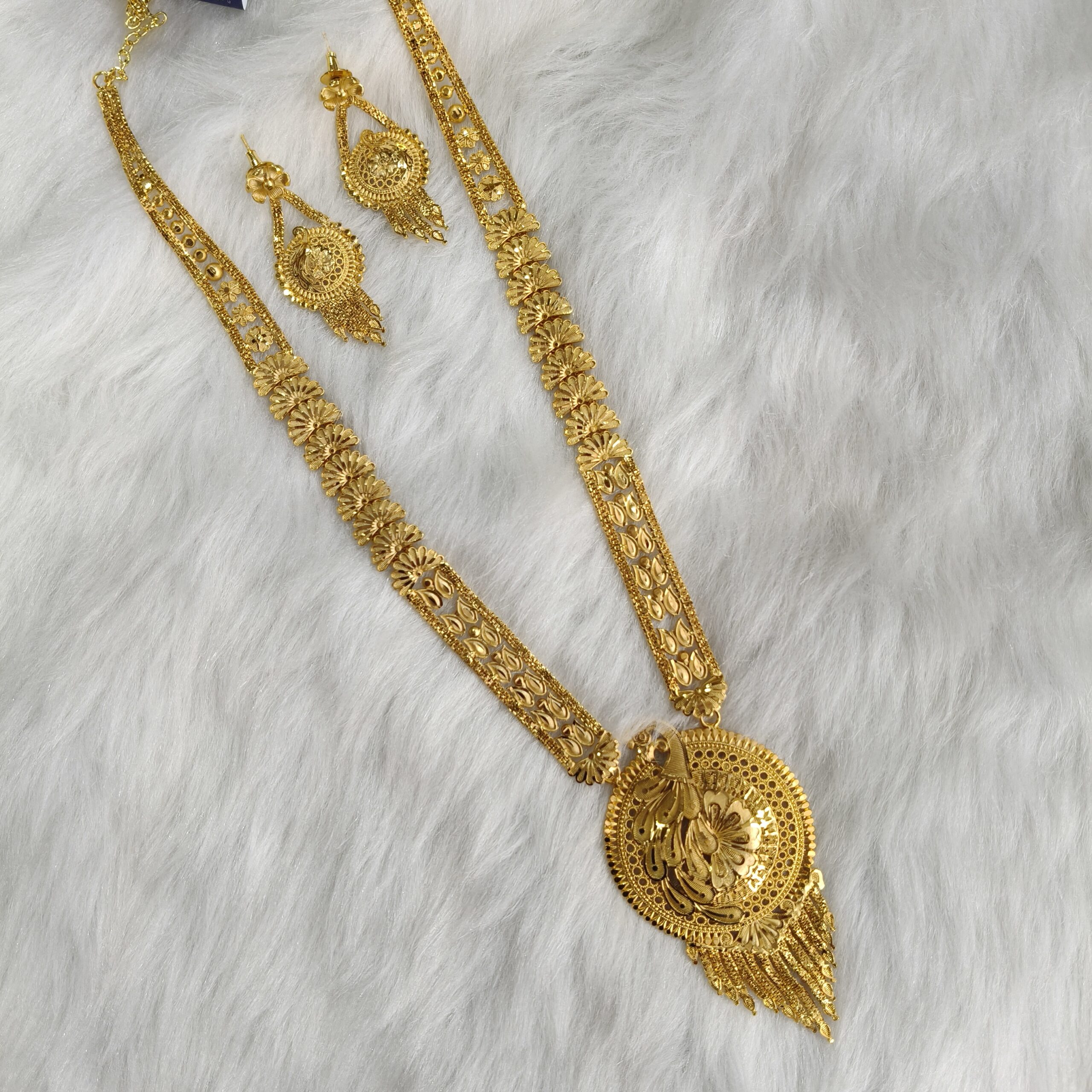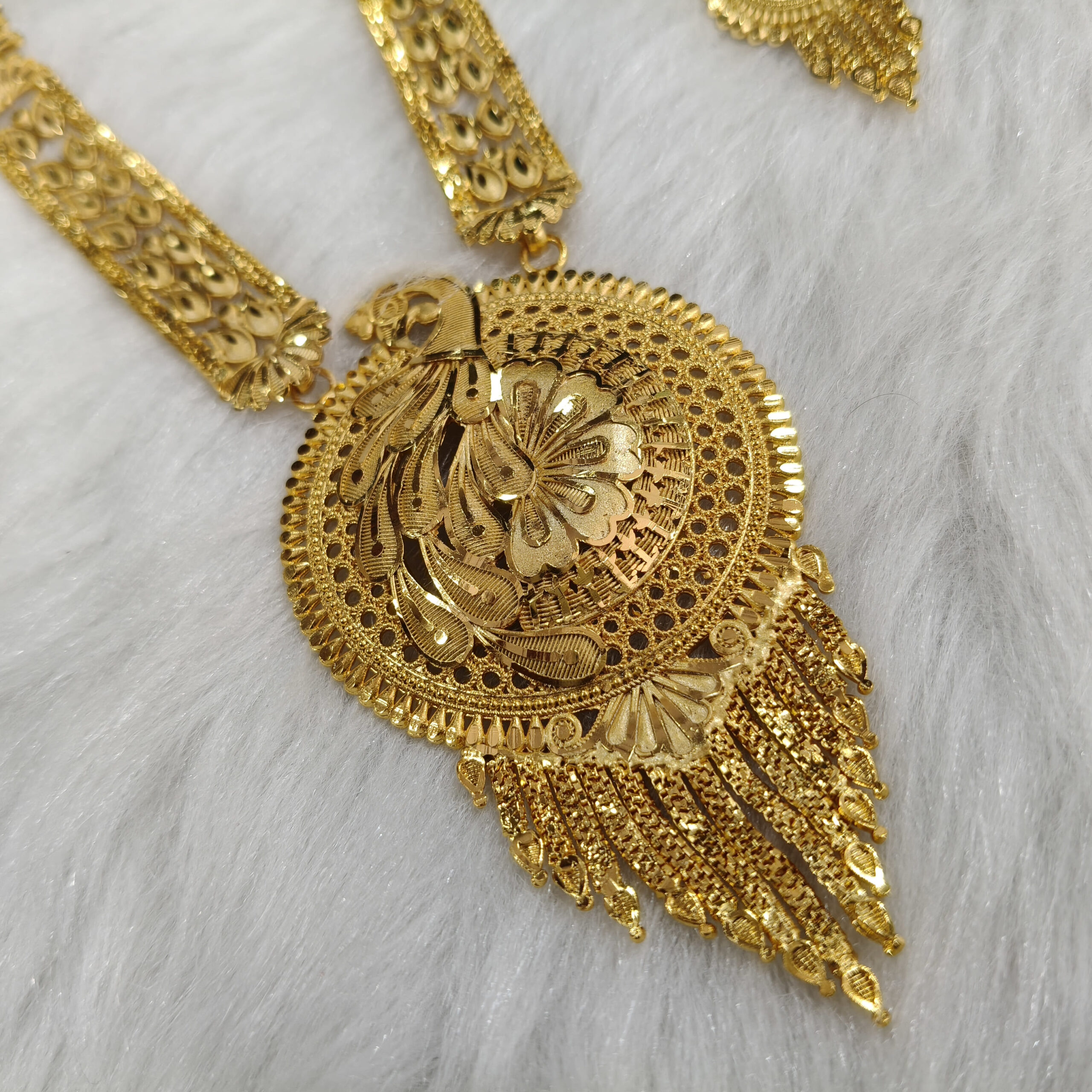 Adorn yourself with this elegant Gold-Plated Sitahar Necklace Set, crafted for bridal, wedding, festive, and special occasions. Featuring a long-set design, this exquisite piece showcases luminous pearls gracefully paired with a beautifully detailed gold-plated locket, exuding timeless charm and tradition. A perfect match for sarees and lehengas, this necklace enhances your ethnic look with sophistication and grandeur. Whether for a bride or a celebratory event, this sitahar is a must-have for those who appreciate classic beauty with a regal touch. Elevate your jewelry collection with this stunning piece, designed to make every moment special.